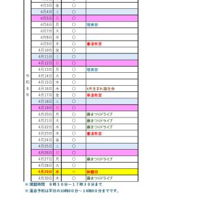 2026年3月18日 お知らせ 2026年4月予定カレンダーをアップします。