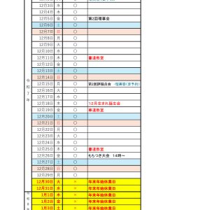 2025年11月25日 お知らせ 12月予定カレンダーをアップします。