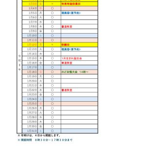 2026年1月6日 お知らせ 2026年1月予定カレンダーをアップします。