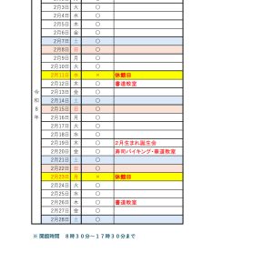 2026年1月21日 お知らせ 2026年2月予定カレンダーをアップします。